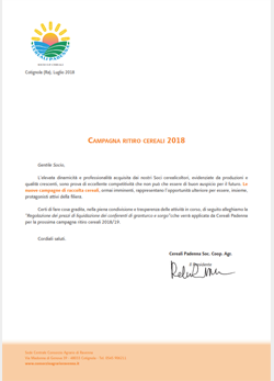 Cereali Padenna lettera e volantini sorgo e mais 2018-ico
