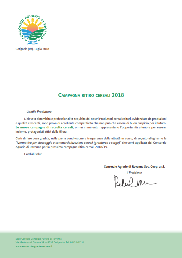 Consorzio Agrario lettera e volantini sorgo e mais 2018