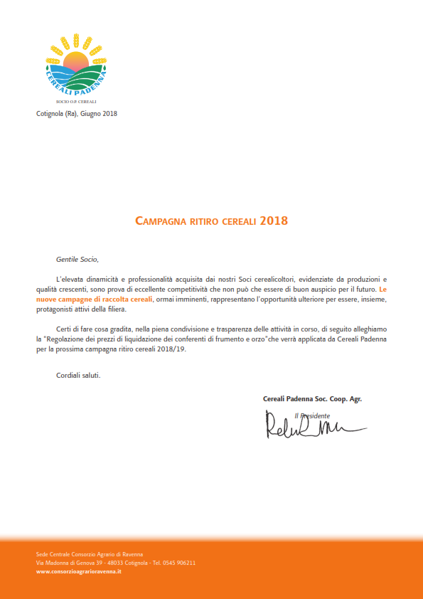 Lettera e Volantino A4 Frumento-ozo CP 2018